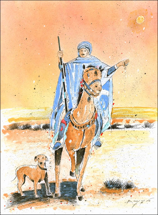«Dans la gerbe des rumeurs qui s’éparpillent, j’attends, je pressens l’instant immanquable où le coup de sabot à la face renversera toute femme dressée libre, toute vie surgissant au soleil pour danser! Oui, malgré le tumulte des miens alentour, j’entends déjà, avant même qu’il s’élève et transperce le ciel dur, j’entends le cri de la mort dans la fantasia.»